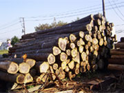 森で伐採された原木丸太は、トラックで製材所へ運ばれます。森から運ばれた材は、製材所の貯木場に置かれます。貯木とは、原木ごとにひとまとめされた山のことです。