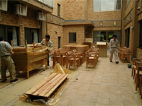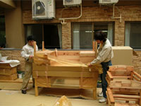 搬入作業の様子です。4tトラック、4台分に積み込んだ家具は、半端な量ではなく、設置までが大変だったそうです。