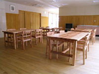 テーブルは、障害者の方が利用しやすいように、天板には、ゆるいカーブのえぐりがあります。