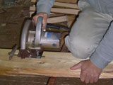 4.カネ決めⅠ デコボコした木の表面を平らにするため、きれいに削り取ります。面付け(つらつけ)とも言います。 |