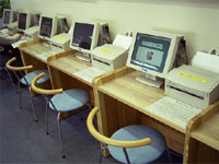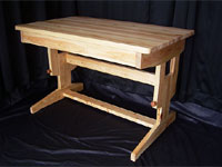 ■パソコン台 (W600 D500 H700) 価格:100,000円 パソコン専用の台です。操作しやすいように、一人分のスペースに余裕を持たせています。隣の人との距離が気にならないように、仕切りがあります。 |