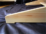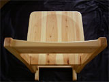 白太と赤みのコントラストを出すことでシマ模様がうまく表現されています。杉ですので、布クッションがなくてもあたたかく、やわらかい座り心地です。