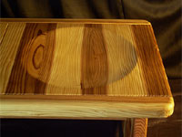 杉の魅力・・・木肌は、柔らかくしっとり濡れた色合いです。赤身と白太のコントラストがきれいです。年月が経つにつれ、深みのあるアメ色に変化します。さまざまな節は、家具に豊かな表情を与えます。