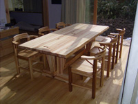 新築のダイニングに設置された、家具たちは、明るい陽射しを浴びて、ようやく木のぬくもり溢れる空間に落ち着きました。